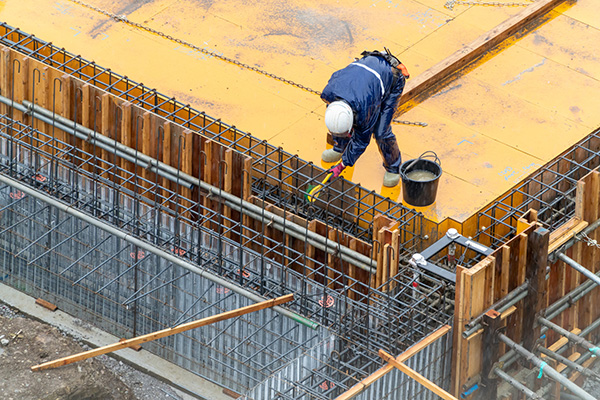 組み立てた型枠の中に生のコンクリートを流し込みます。コンクリートの打設は別職種が行いますが、打設前と打設後の大事な点検は型枠大工のお仕事です。